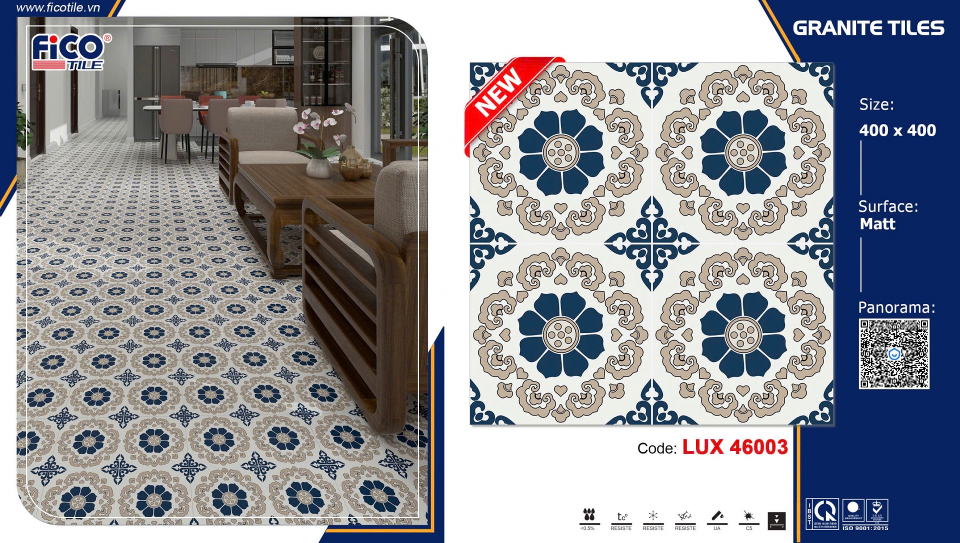 GẠCH BÔNG 40X40 BÔNG XANH VIỀN NÂU 46003 CAO CẤP GIÁ RẺ
