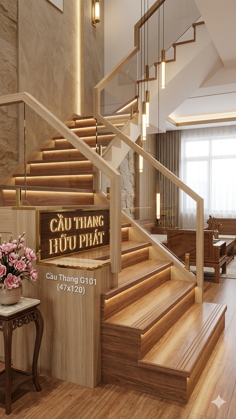 Mẫu Cầu Thang G101 là sự lựa chọn thông minh cho những gia chủ yêu thích vẻ đẹp mộc mạc của gỗ nhưng lại đề cao tính tiện dụng và độ bền của vật liệu đá. Nó mang lại vẻ đẹp vững chãi, ấm áp cho "xương sống" của ngôi nhà.