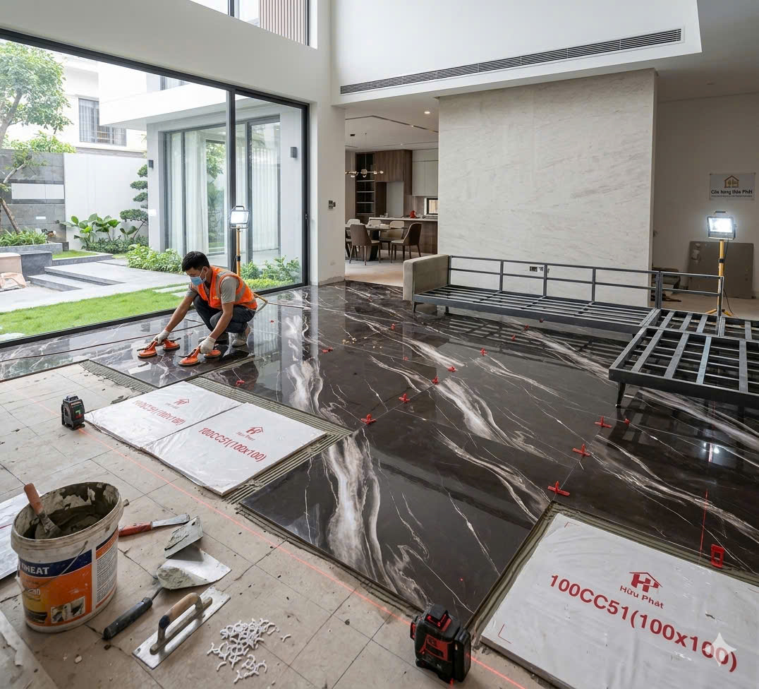• High-Tech & Industrial: Màu đen và vân trắng rất dễ phối với các vật liệu hiện đại như kính, thép không gỉ và các thiết bị công nghệ.